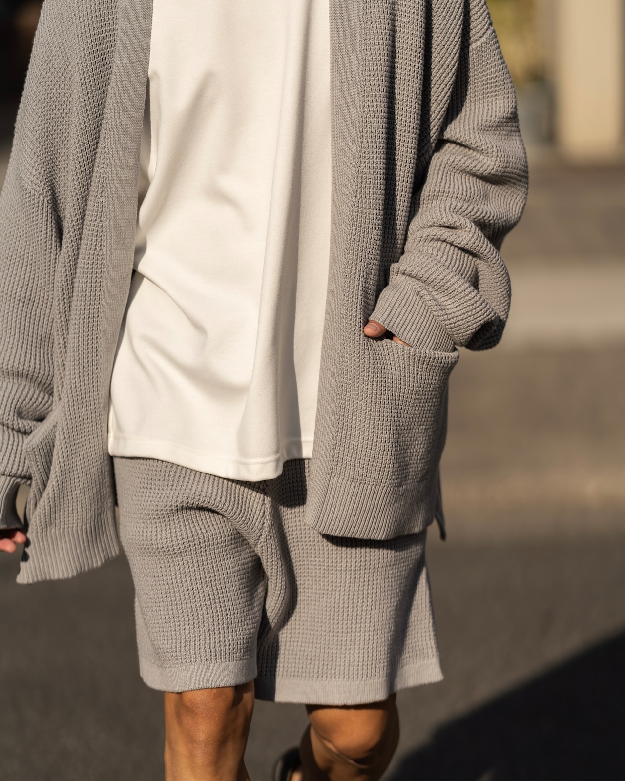 コットン糸を用いてワッフル編みにしたニットショーツ