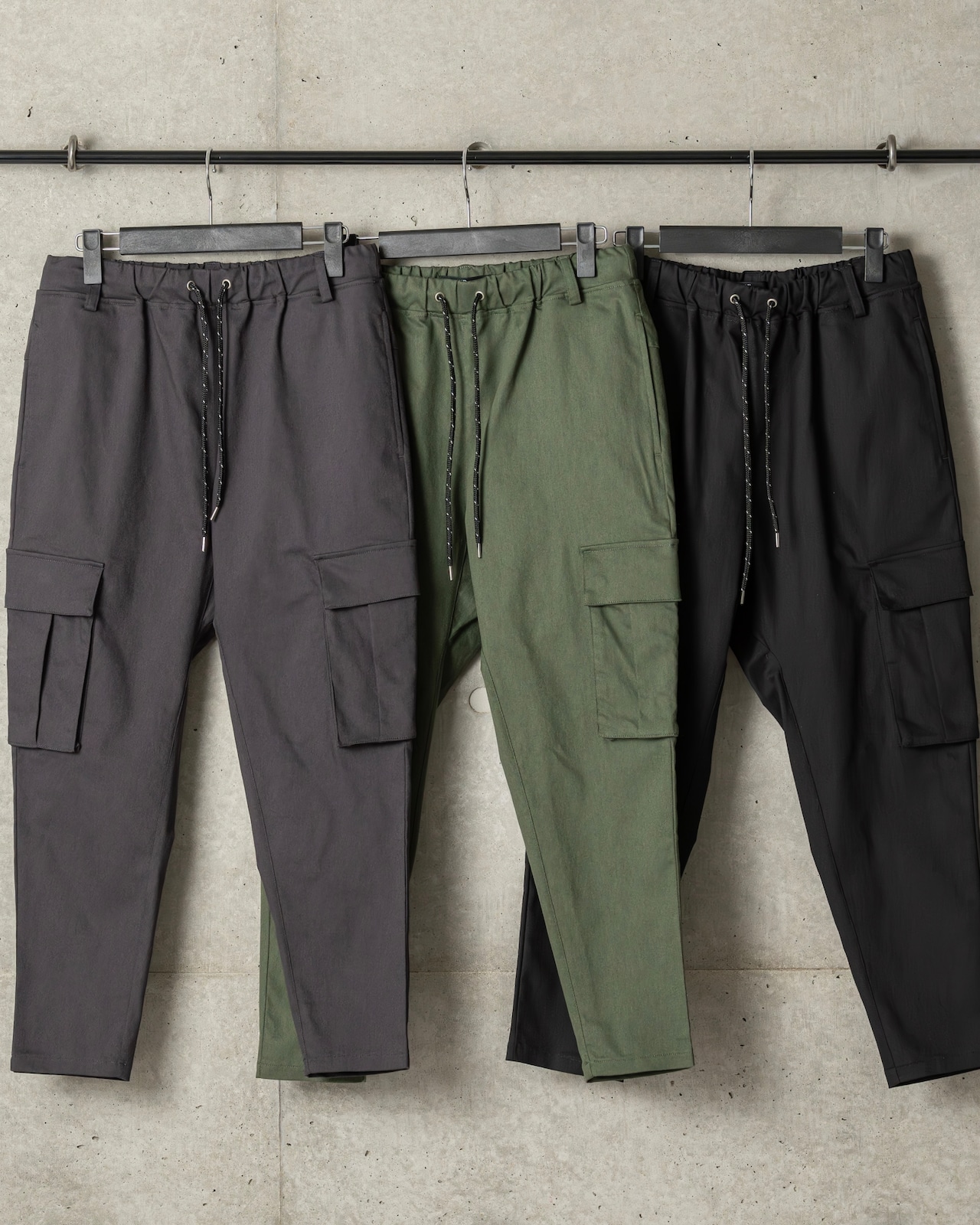 ストレッチツイル素材を使用したカジュアルテイストの象徴的なカーゴパンツ