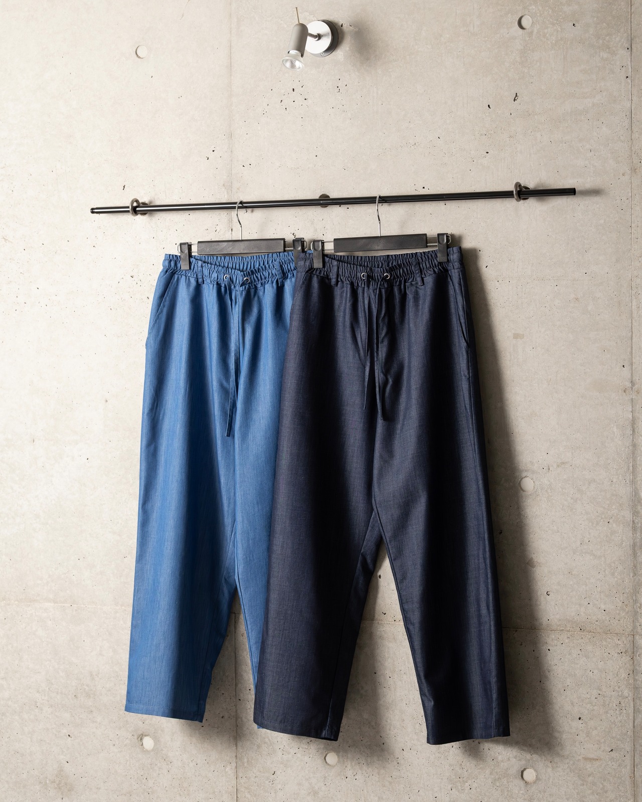 シャンブレーを使用した軽やかな穿き心地のリラックスストレートパンツ