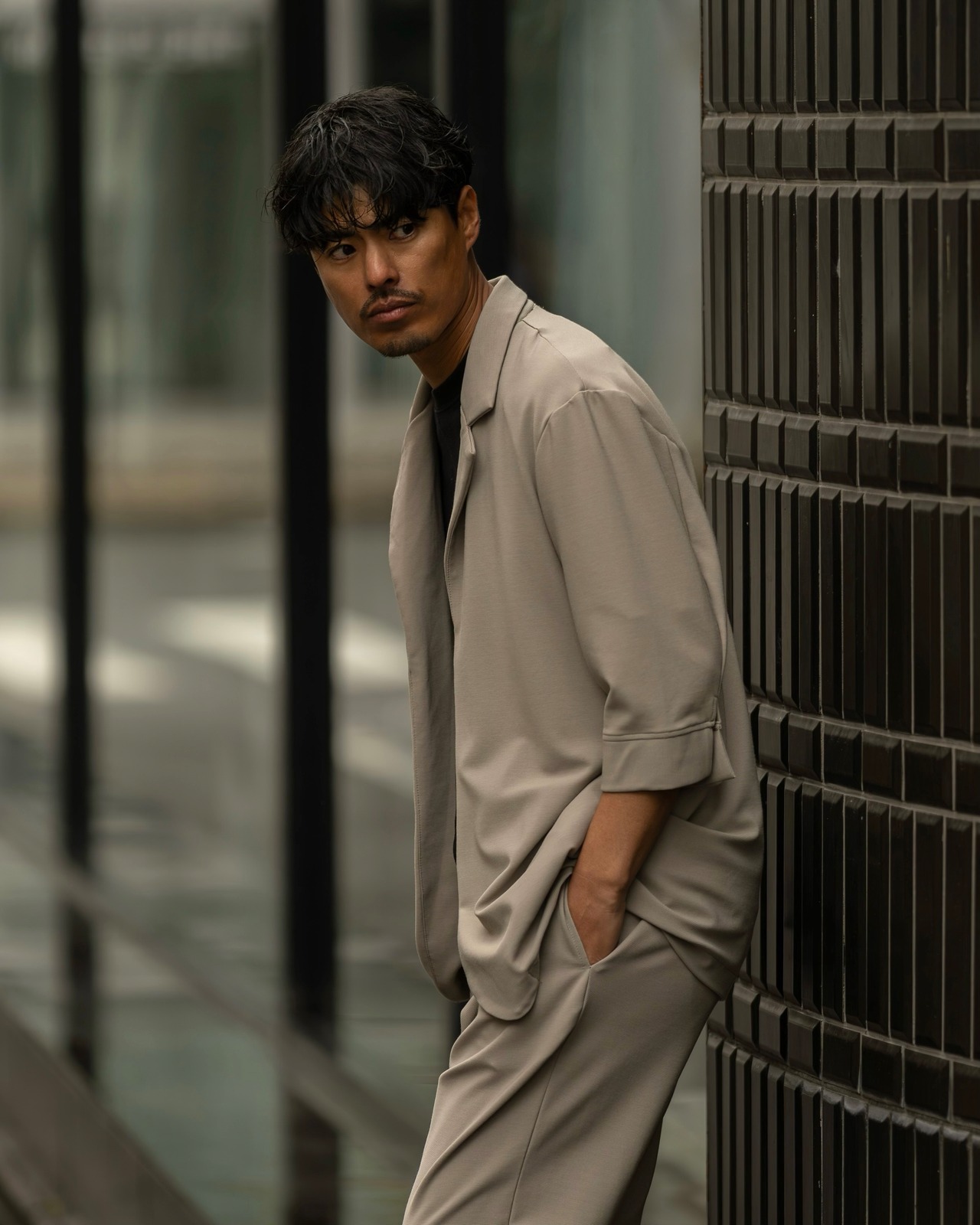 同素材のスラックス[2544amy-4]も展開していますのでセットアップスタイリングも可能です。