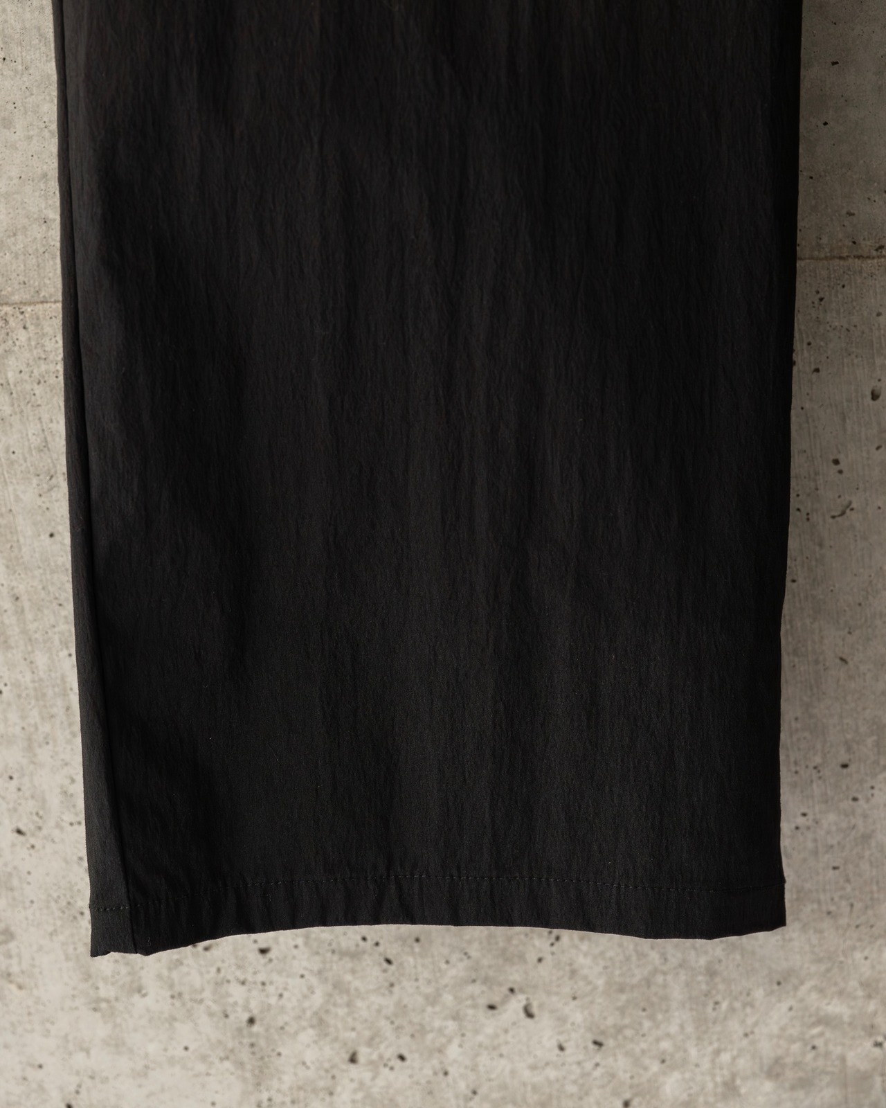 ワタリやヒップ周りをワイドに設定して、そのまま裾にかけてスッと落ちるシルエット。