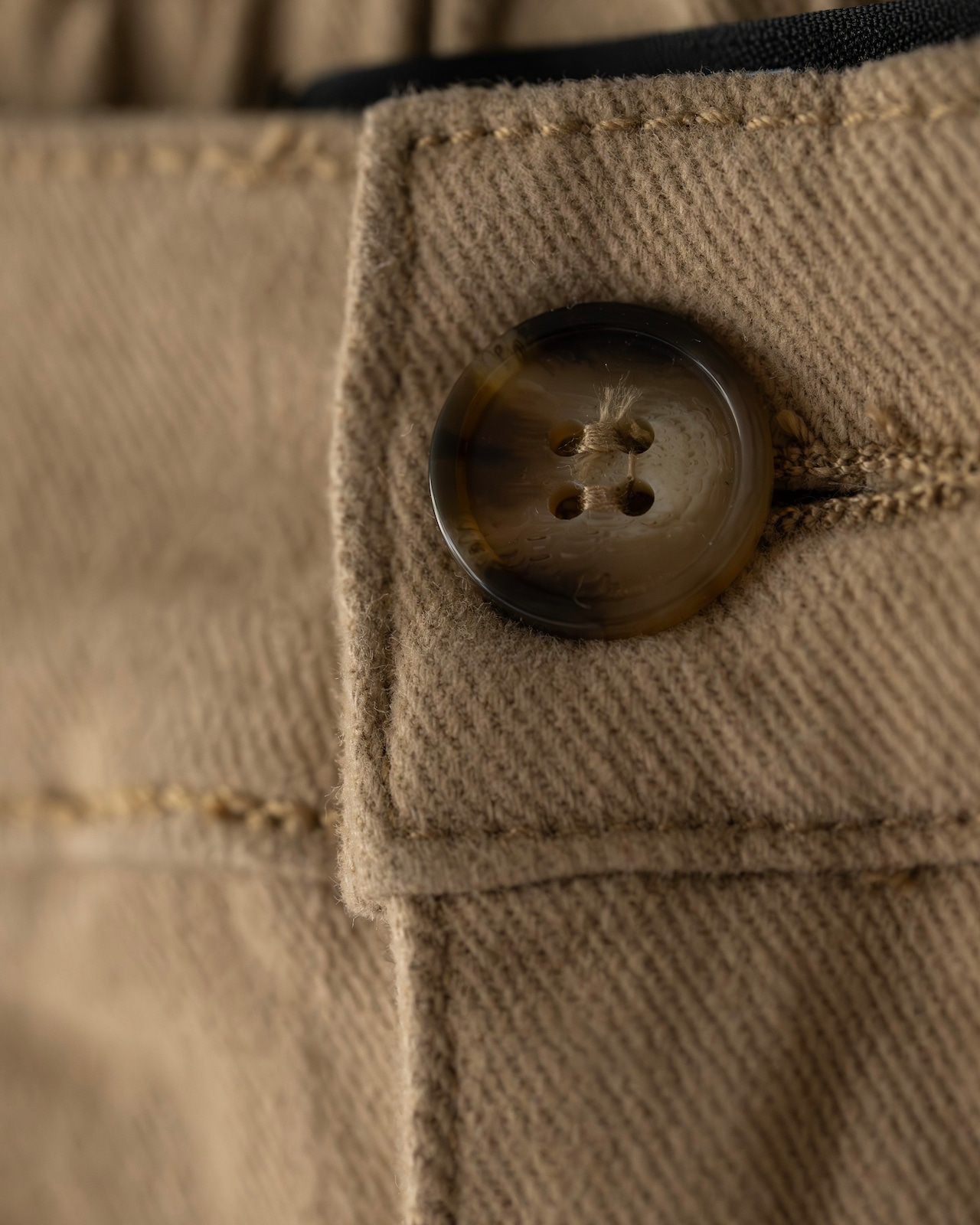 表面を微起毛させたストレッチツイルが、程よい粗さとこなれた風合いを演出。