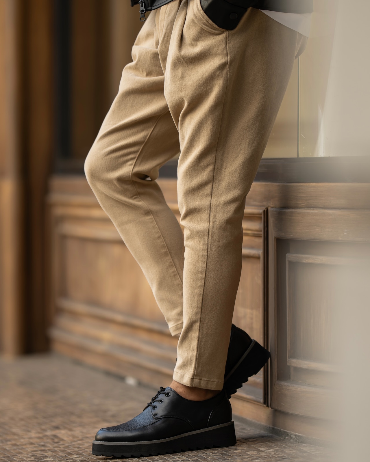 ストレッチツイルを採用した個性的で立体的なフォルムのパンツ