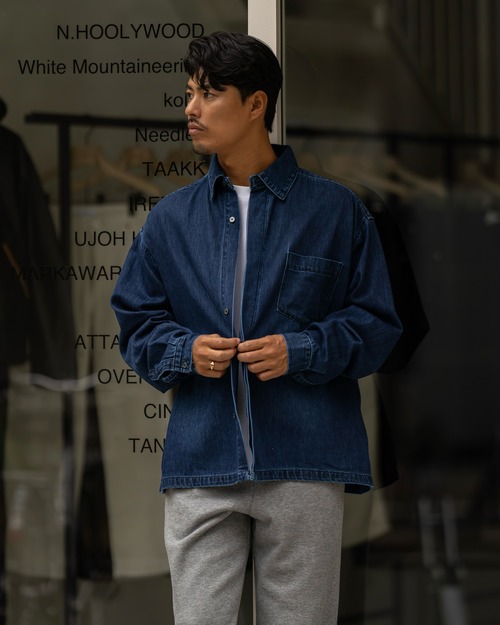 洗練されたフライフロントのデザインとデニム特有の風合いが融合し、大人のムードとモダンなニュアンスを演出。