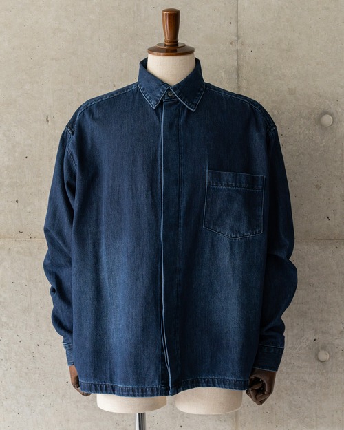 ライトオンスのストレッチデニムを使用したフライフロント(比翼仕立て)シャツ