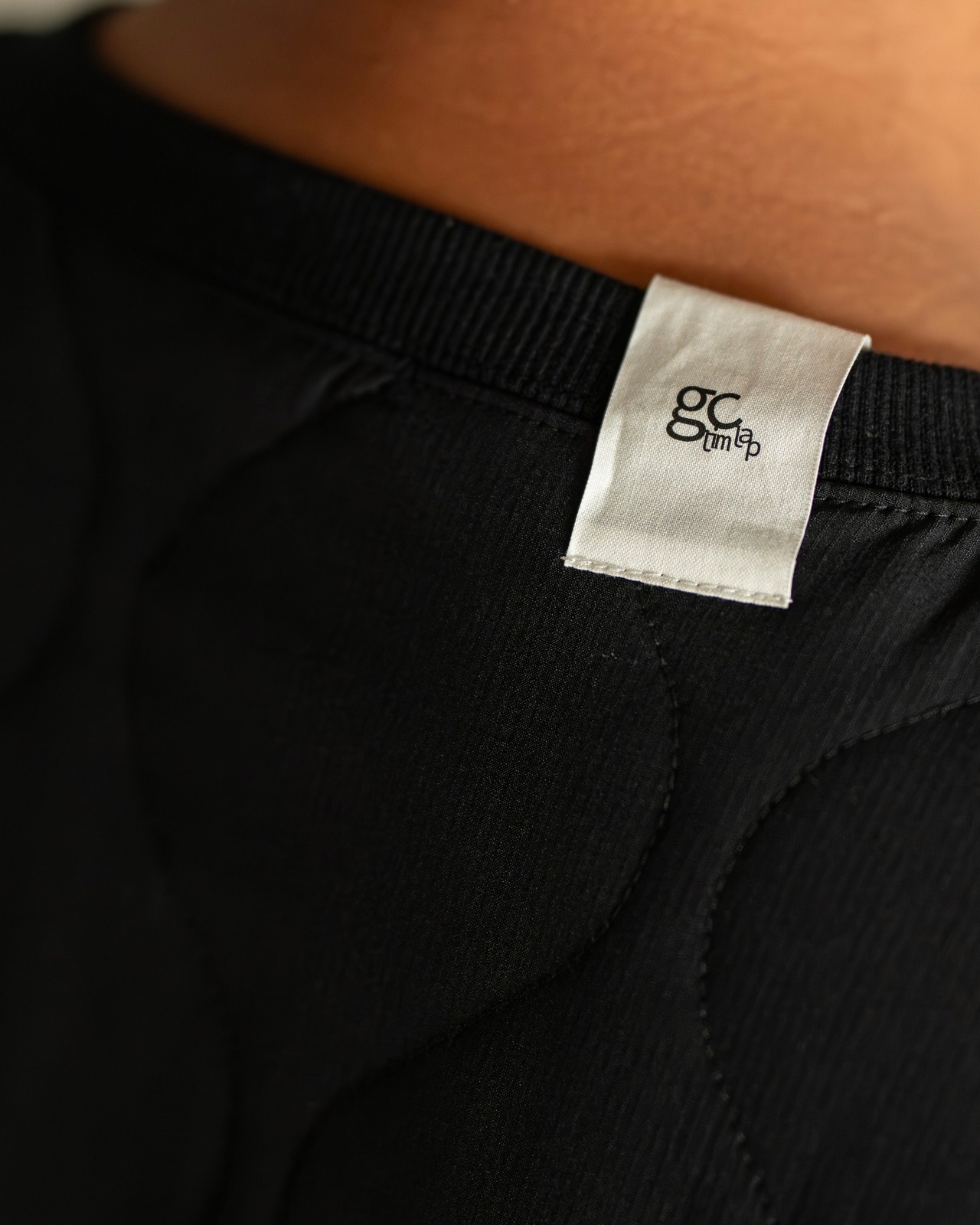 キルティングとストレッチ素材の組み合わせにより、裏面に若干のシワが見られることがありますが、着用には支障ございません。