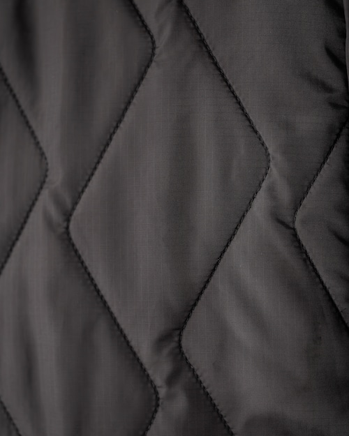 波のように折れ曲がるステッチラインが印象的なスプリットウェーブキルティングを施した、表情豊かなナイロンファブリックが存在感を引き立てます。