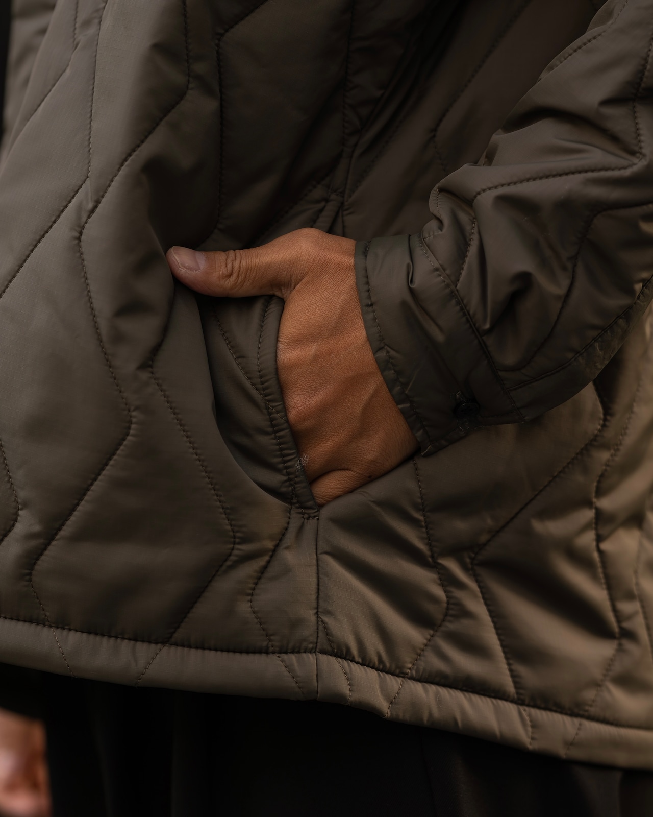 スプリットウェーブキルティングが映える、アウターライクなシャツジャケット