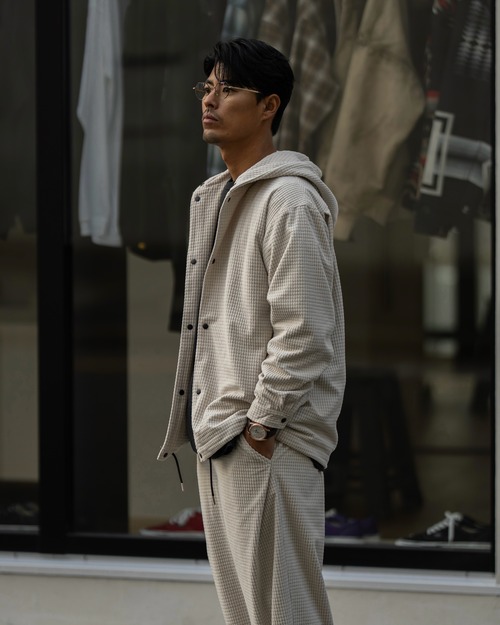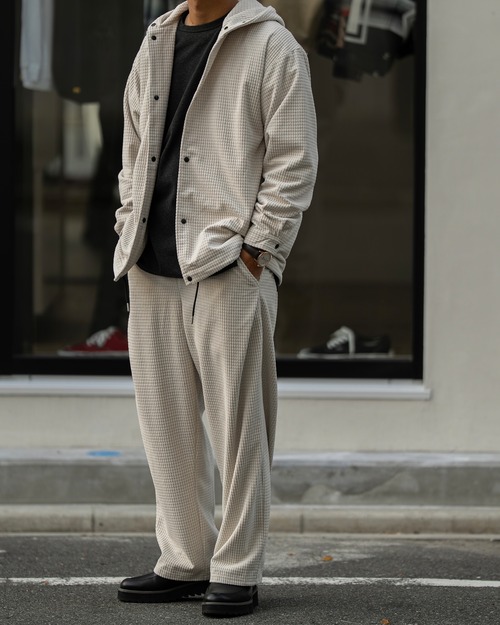 同素材のパンツ[2556amy-5]とのセットアップでまとまりのあるコーディネートも可能です。