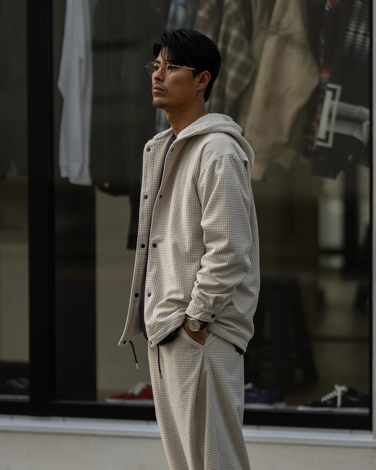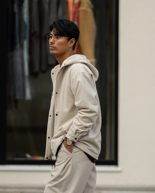 シャツの着合わせやすさに、フードのカジュアルさを融合した、季節感と汎用性を兼ね備えた羽織りアイテムです。