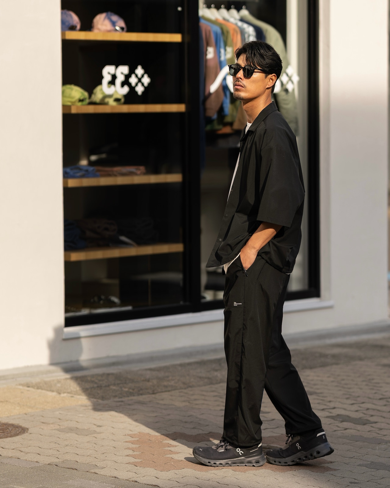 同じファブリックのトラックパンツも展開しておりスマートなセットアップコーデにも対応した一枚。
