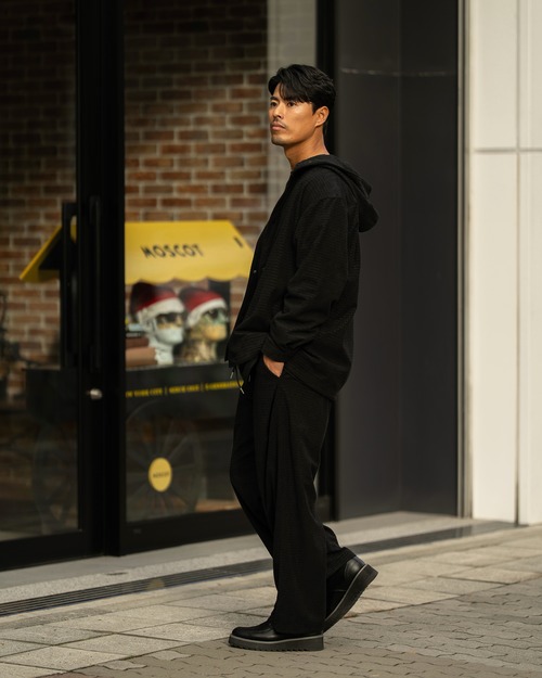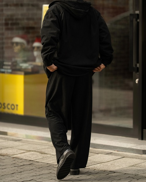 同素材のパンツ[2556amy-5]とのセットアップでまとまりのあるコーディネートも可能です。