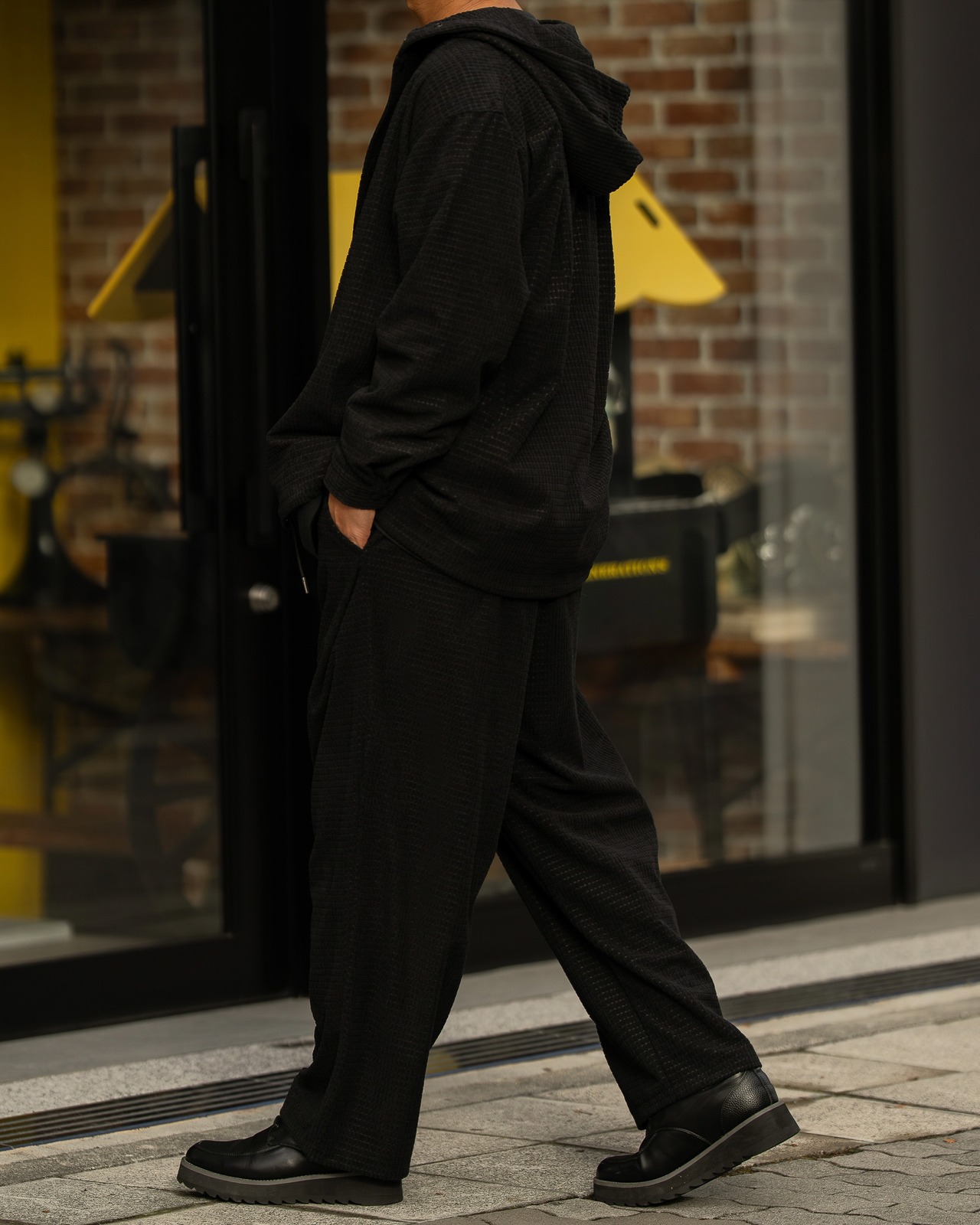 両裾脇にはスラッシュポケットを配置し、スマートフォンや小物の収納にも対応。