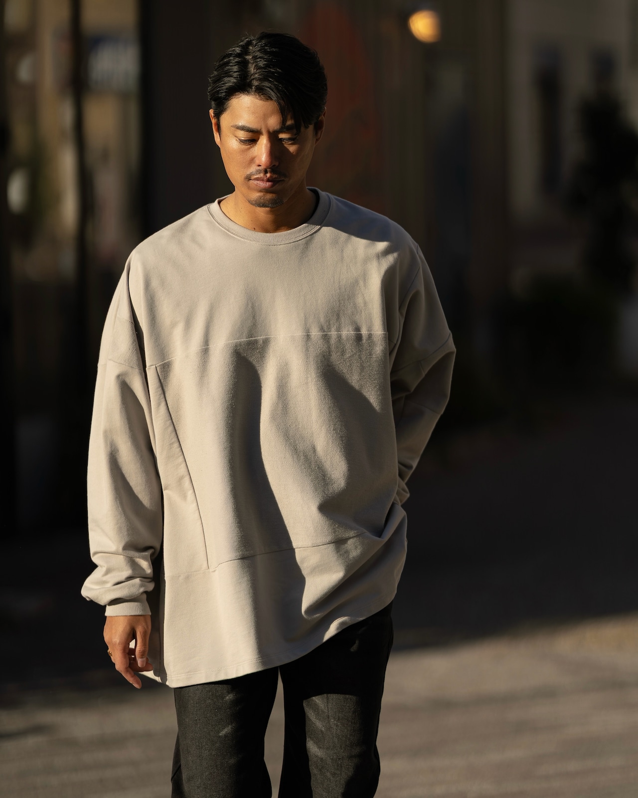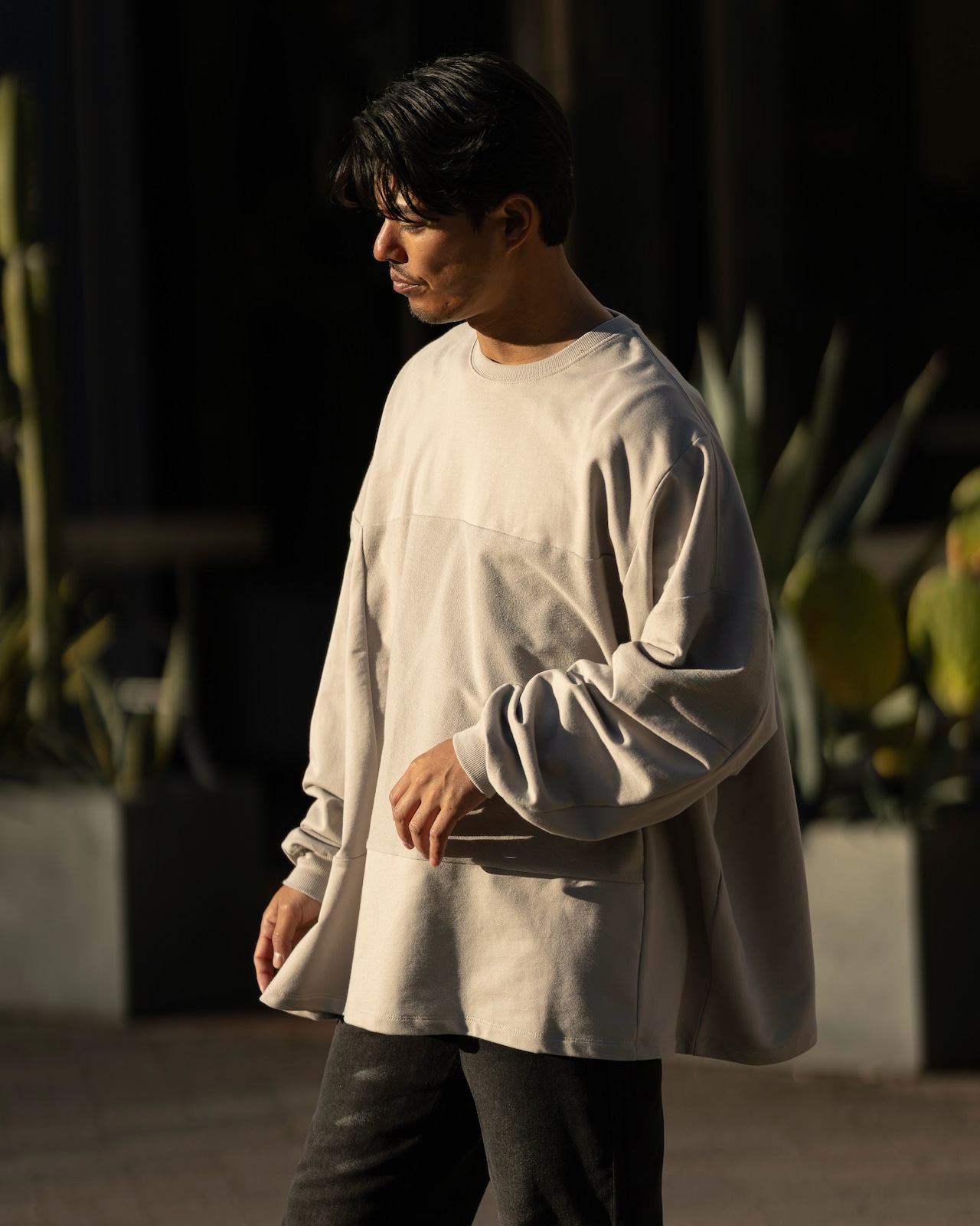 ドロップショルダー+ワイドな身幅で、ボリューム感のあるオーバーサイズ