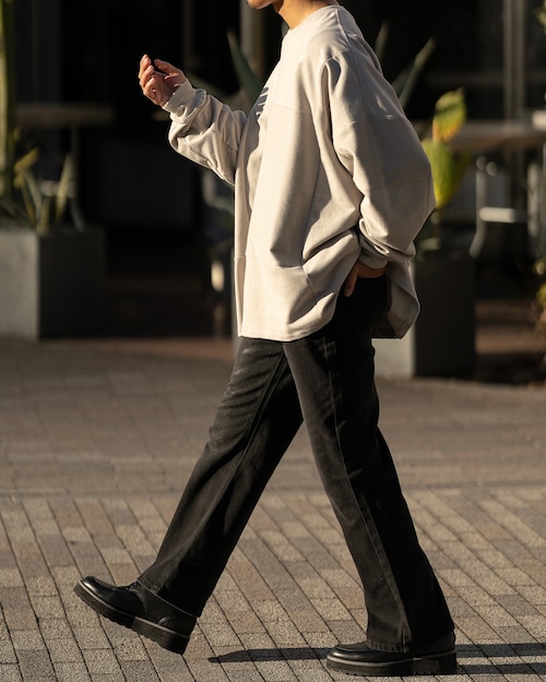着用感のイメージは、スウェットとT-Shirtの中間的な肉感でインナー使いにも最適です。