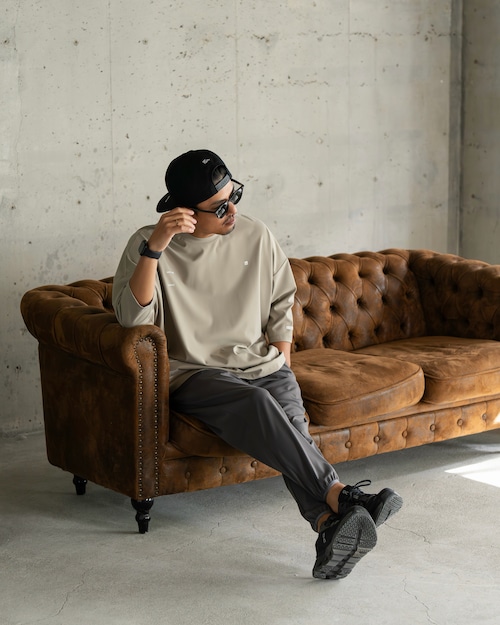ベースボールキャップをベースに、やや大きめで反りのあるツバを採用。