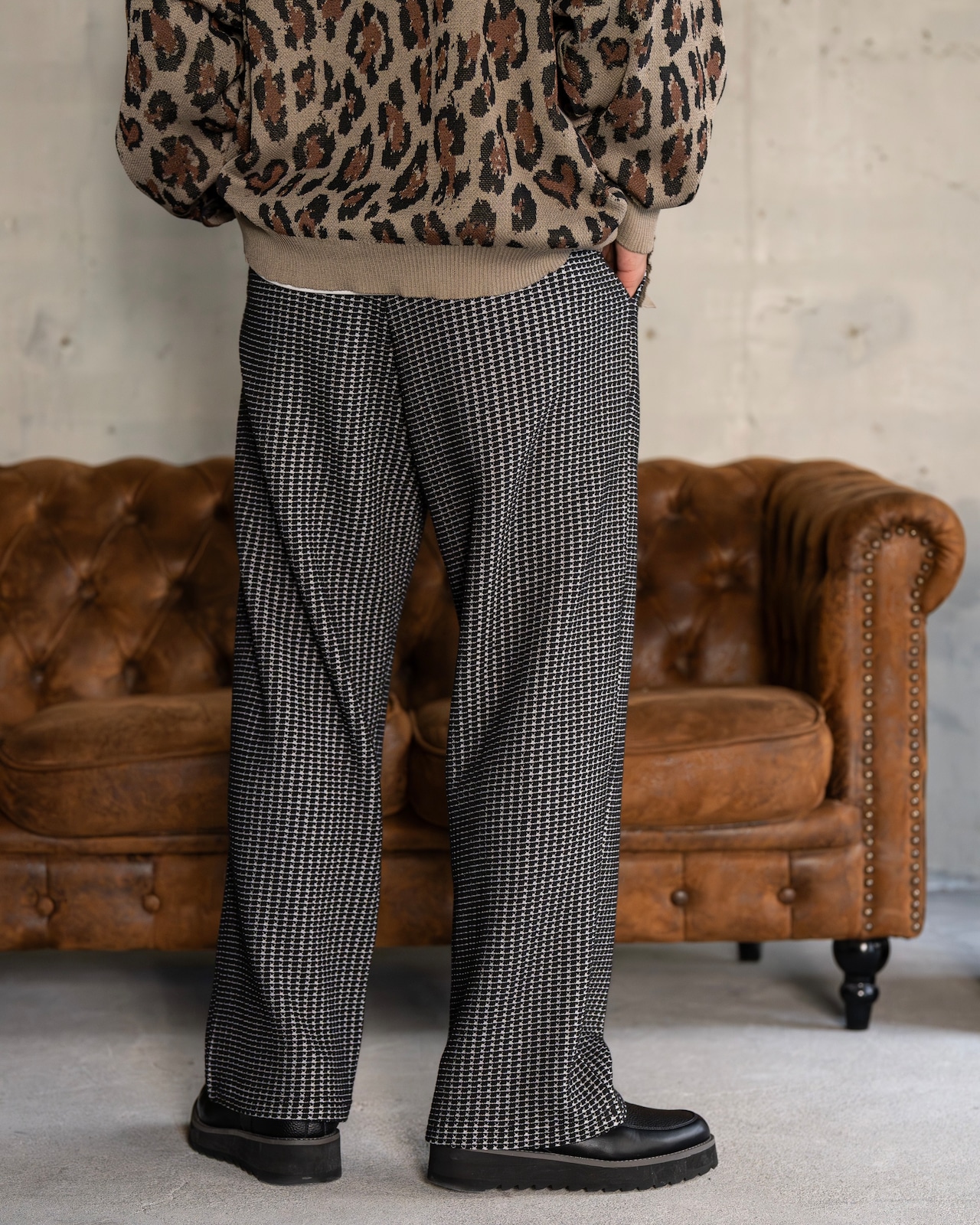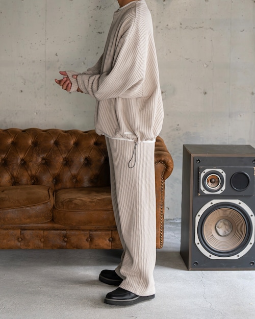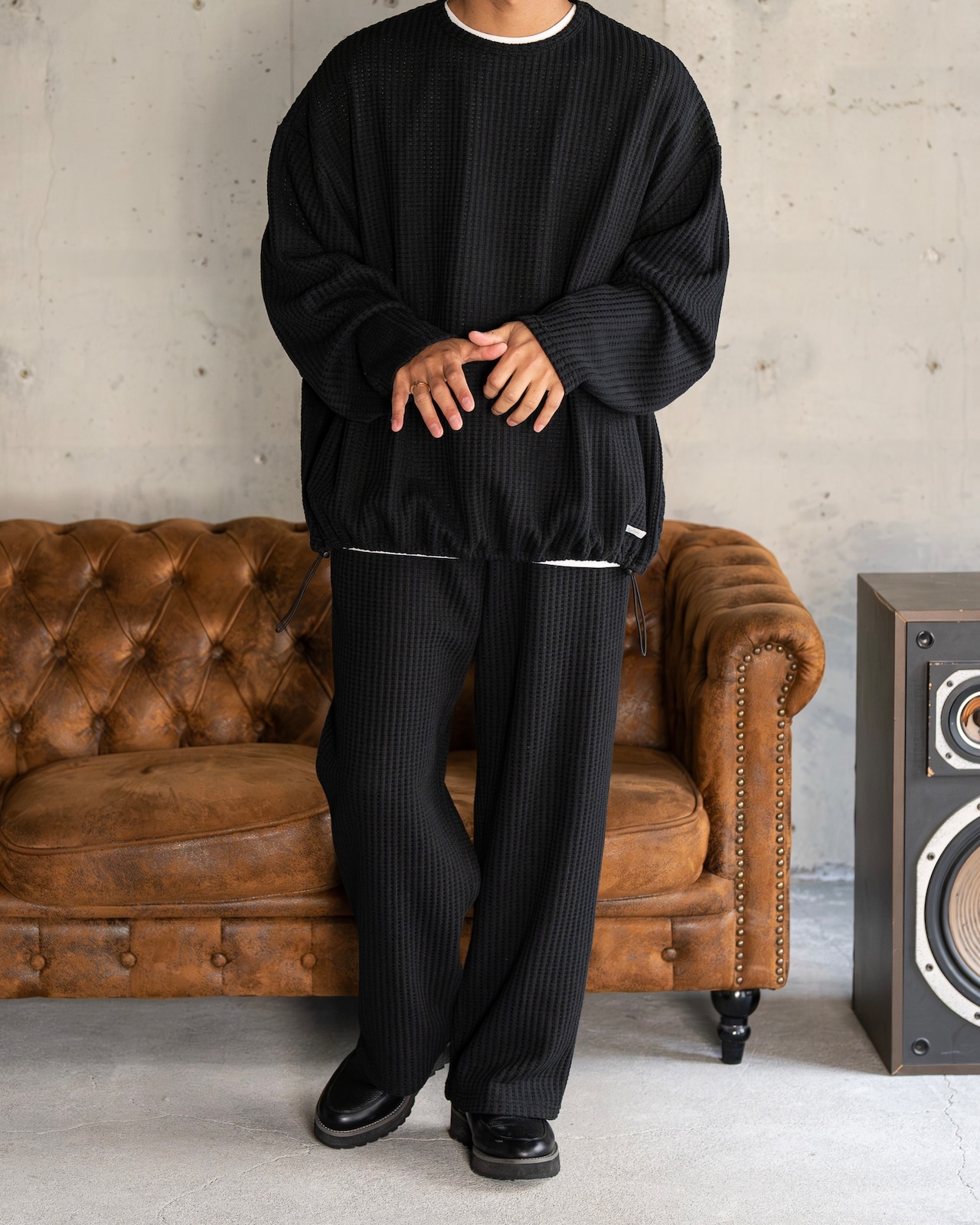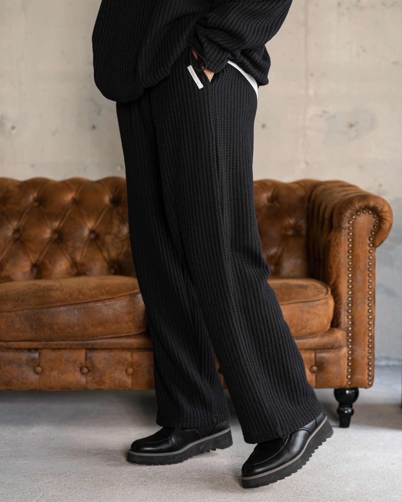 凹凸感のあるビッグワッフル素材とボリュームのあるシルエットが融合した、着回し自在なストレートパンツです。