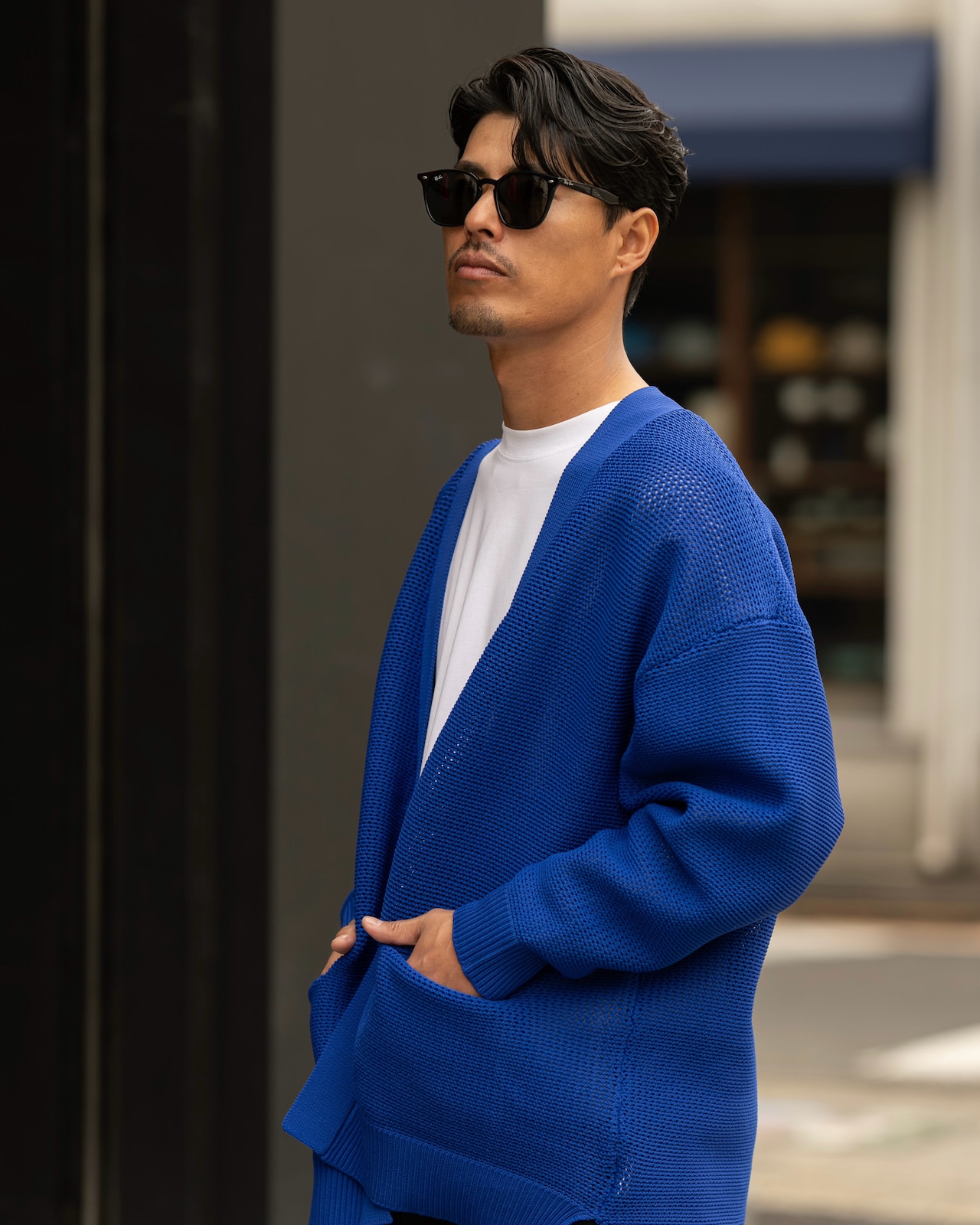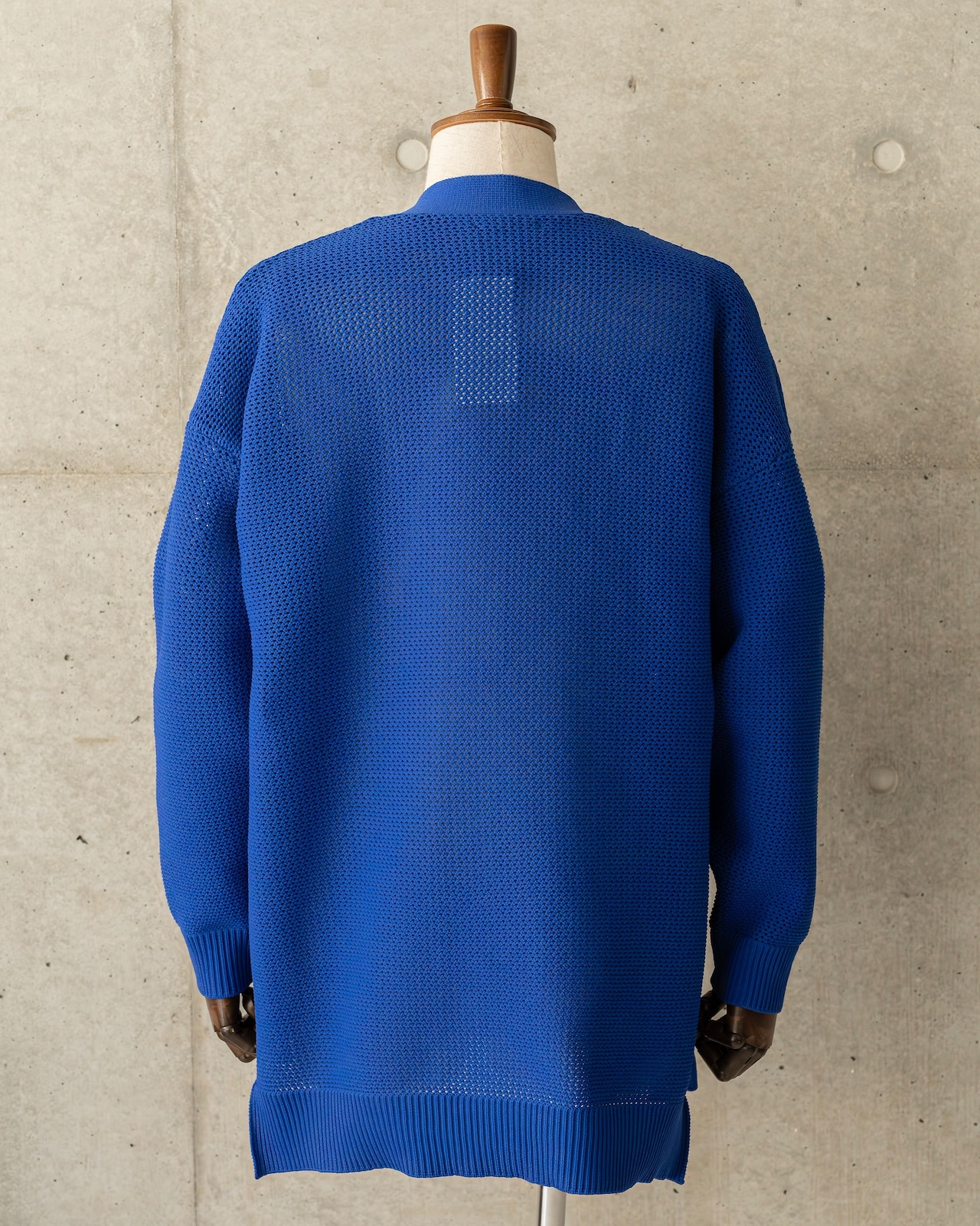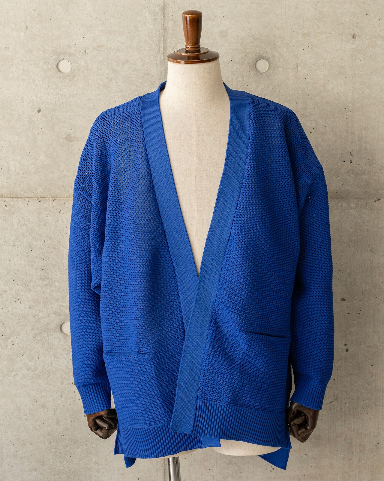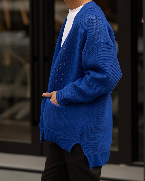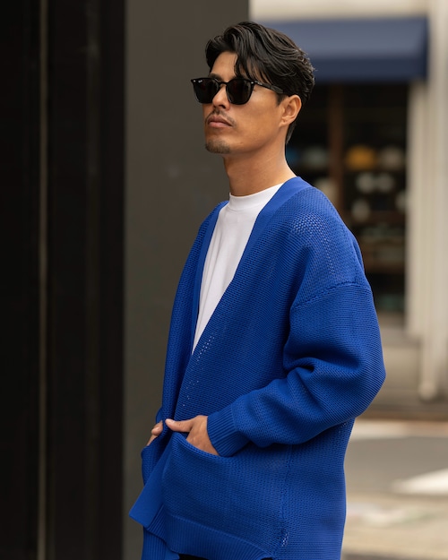 シンプルながらも奥行きを感じさせる編み地と、ボタンレスのミニマルなデザインが融合。
