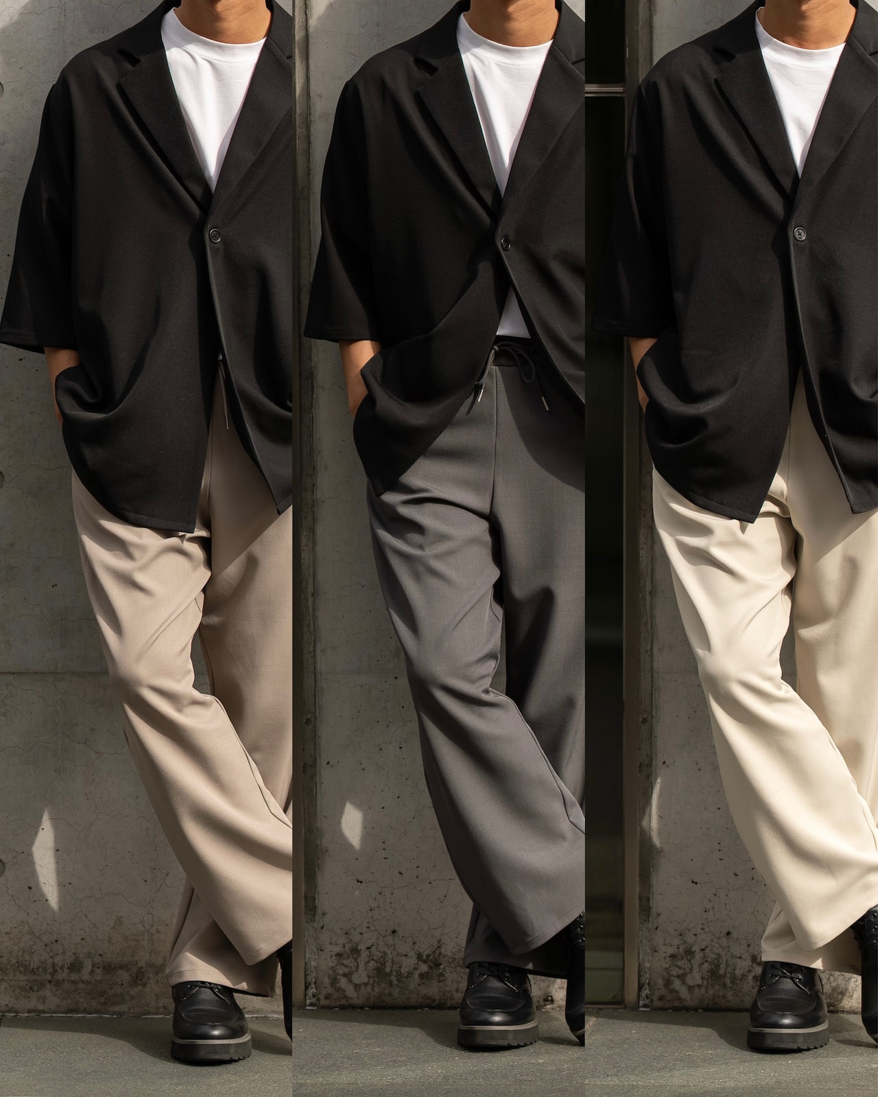 同素材のパンツ[2632amy-6]とのセットアップコーデも展開しており、こなれたスタイリングが完成します。