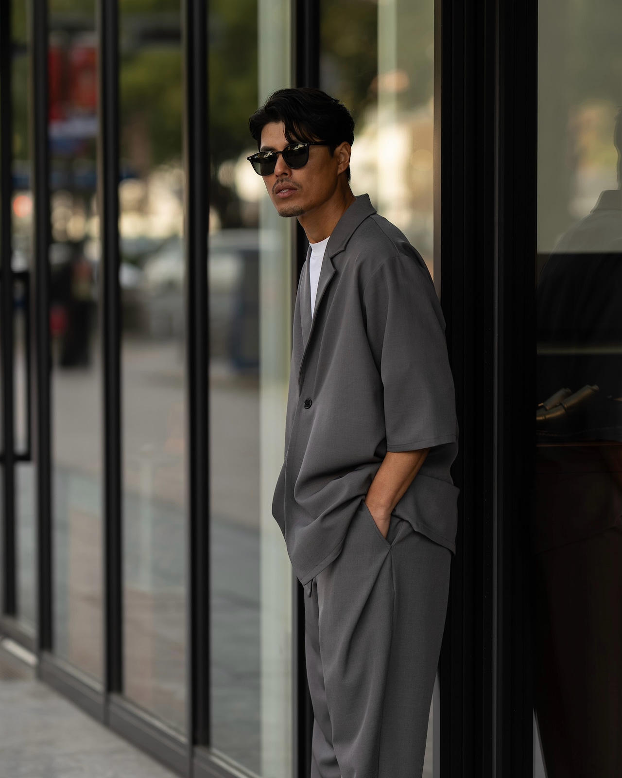一見、半袖だけど肘が隠れるだけで落ち着きが出る