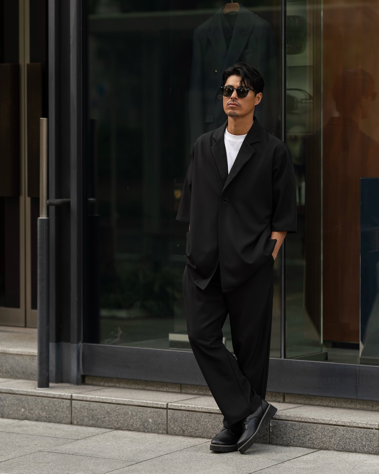同素材の半袖ジャケット[2631amy-6]と合わせれば、シャツ感覚で羽織れるこなれたセットアップスタイルが完成します。