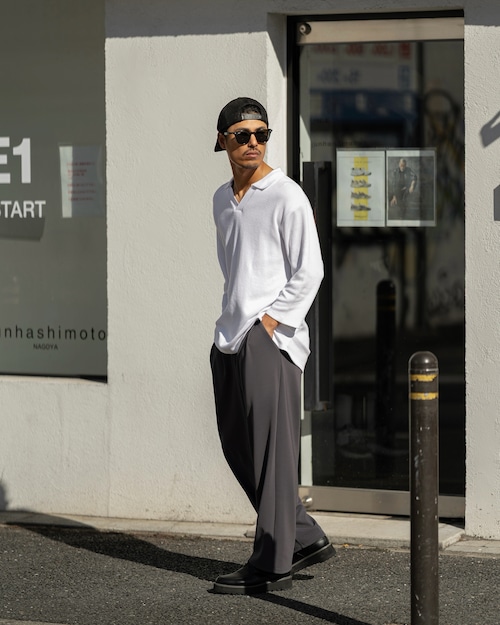 スキッパーデザインの首元がシャープな印象を添え、カジュアルながらも品よくまとまる一枚。