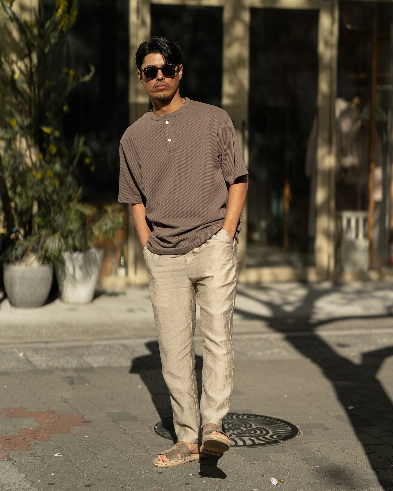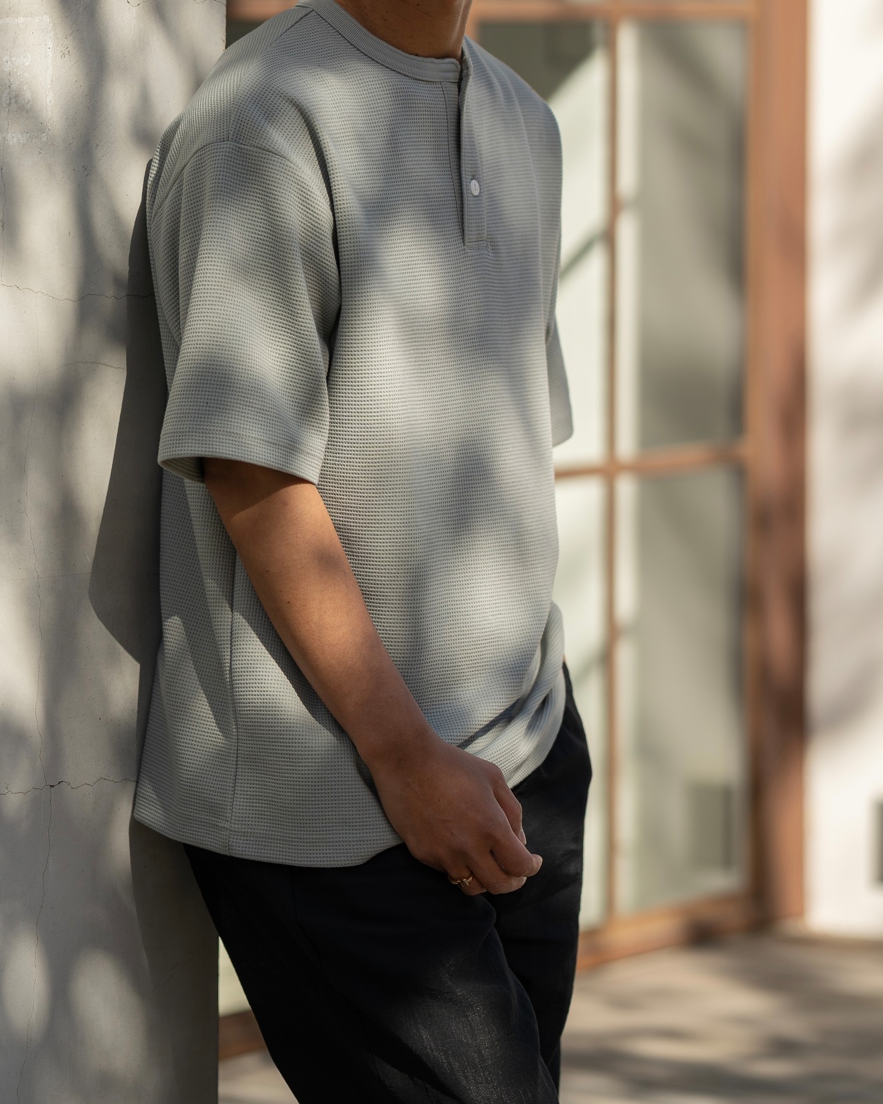 DRY Waffle Henley Neck Tee[aw-m7462]ヘンリーネック