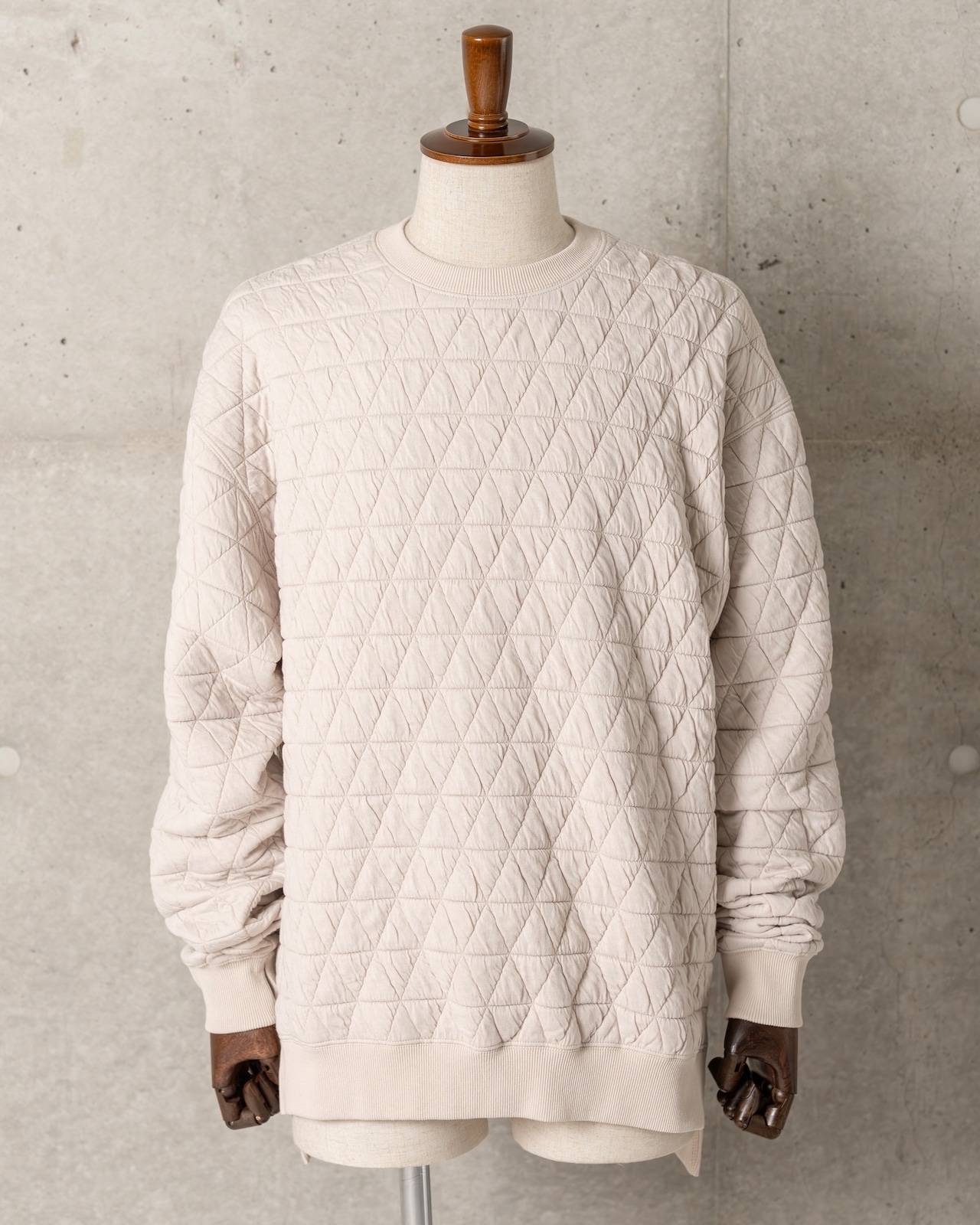 幾何学模様柄のキルトカットソーを使用したロングスリーブプルオーバー