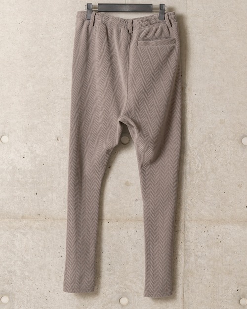 ヘリンボーンパターンで作られたふくれ編みジャガードを使用したタイトフィットシルエットパンツ