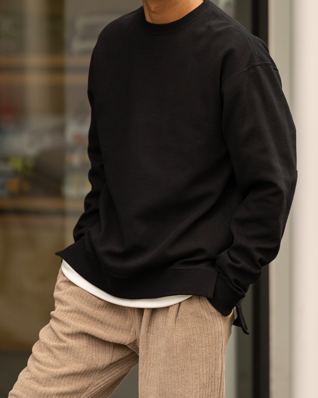 2層のダンボールニット構造のカットソーで透け感がなく程良くボリュームのある肉感。